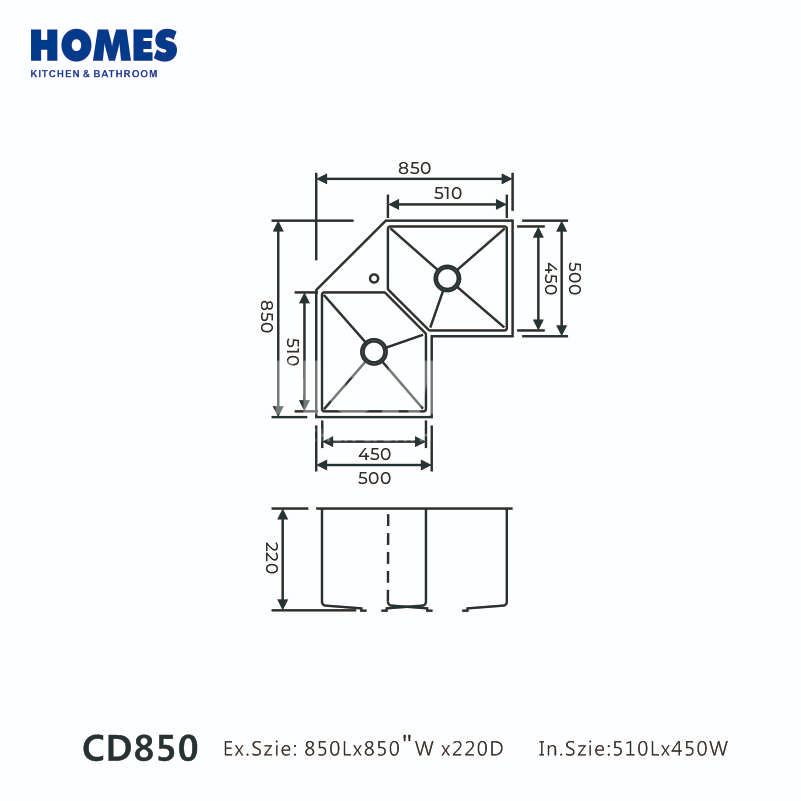 Common acidic or alkaline kitchen items — like dish soap and white vinegar — can easily rust non-stainless steel. But our CD850 Kitchen Sink is different: it’s made from premium 304 stainless steel, built with exceptional corrosion resistance. Its dense chromium surface film locks out rust; even if the film is damaged, a new layer forms automatically. This means long-lasting, flawless rust protection that extends the sink’s lifespan.At HOMES, we prioritize precision. We’ve eliminated basin weld seams entirely to keep your kitchen surfaces dry — making the CD850 a truly reliable choice.Market feedback speaks for itself: User Serena shared, “The CD850’s brushed finish is so smooth, it’s easy to clean and stays scratch-free — even with daily utensil use. Its great quality means I won’t have to spend money on repairs down the line.”