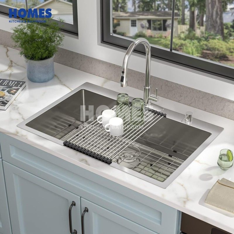 Crafted from premium 304 stainless steel, the T180481 kitchen sink delivers exceptional corrosion resistance, effortlessly withstanding the rigors of daily use. At HOMES, we prioritize meticulous attention to every detail throughout the production process, ensuring each component meets uncompromising quality standards—resulting in a kitchen sink that’s as durable as it is reliable.