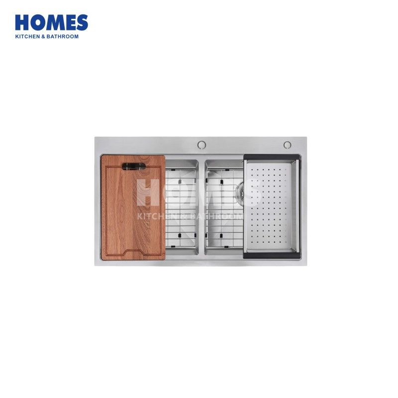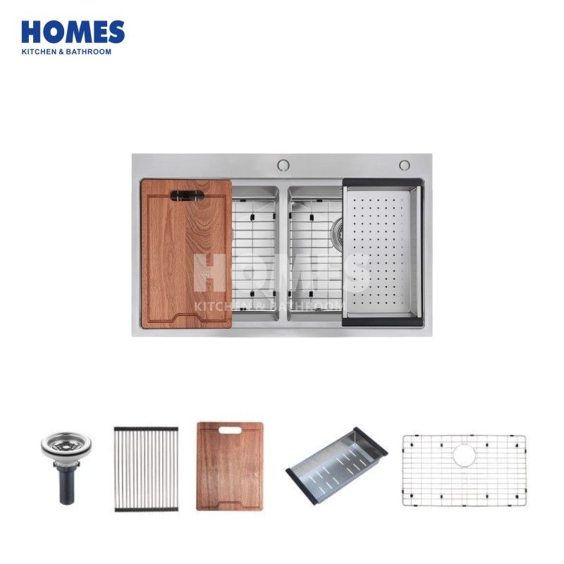 The faucet installation of this sink supports 1/2/3 holes, providing users with more personalized choices. It is equipped with practical accessories such as a drain assembly and a protective bottom grid.